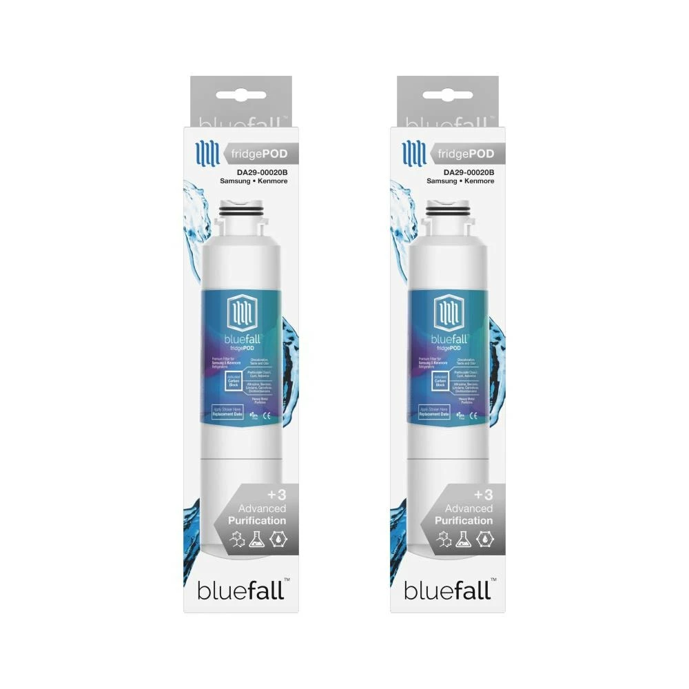 So it’s time to replace your fridge’s water filter. If you’re looking for premium OEM quality without paying double for the logo on the label, this filter is for you. All Bluefall FridgePod filters feature the Drinkpod +3 Advanced Purification process. Our filters are manufactured to be lead free, with natural coconut-based cores, and bpa-free housings, in an ISO9001 facility. Additionally, all filters are certified and tested by NSF and IAPMO for material safety and structural integrity. Purification: our +3 Advanced Purification process has been optimized for your Samsung or Kenmore refrigerator to improve your drinking water in three specific ways. Particle scrub: through the use of mechanical reduction, this scrub utilizes the filter core’s compressed micropore structure to trap particles. Effective for greatly reducing contaminants like rust, and other sediments down to 2~5 microns. Chemical scrub: A chemical reduction process that uses the filter core’s oleophilic surface to attract compounds and non-polar contaminants, which it adsorbs onto its surface. Effective for reducing common disinfection byproducts (THMs), contaminants like chlorinated solvents and other industrial pollutants. Polishing scrub: utilizes pressure to force-diffuse your water across the filter’s vast micropore surface area, to consistently expose and reduce dangerous and aesthetic contaminants. A single filter core’s surface area can exceed 1/2 million square feet. Effective for improving the safety of your drinking water while greatly reducing undesirable taste, odor, and color. Compatibility: DA29-00020B, DA29-00020B-1, DA29-00020A, DA-97-08006A, DA-97-08006A-B, DA-97-08006B, DA29-00019A, DA2900019A, DA2900020A, DA2900020B, DA97-08006A-B, RF28HMEDBSR, RFG298HDRS, RS25J50, RF263TEAES, RF4287HARS, had-cin, had-cin-exp, had-cinexp, hafnium, 04609101000, 09101, 46-9101, 469101, 9101, 460910100