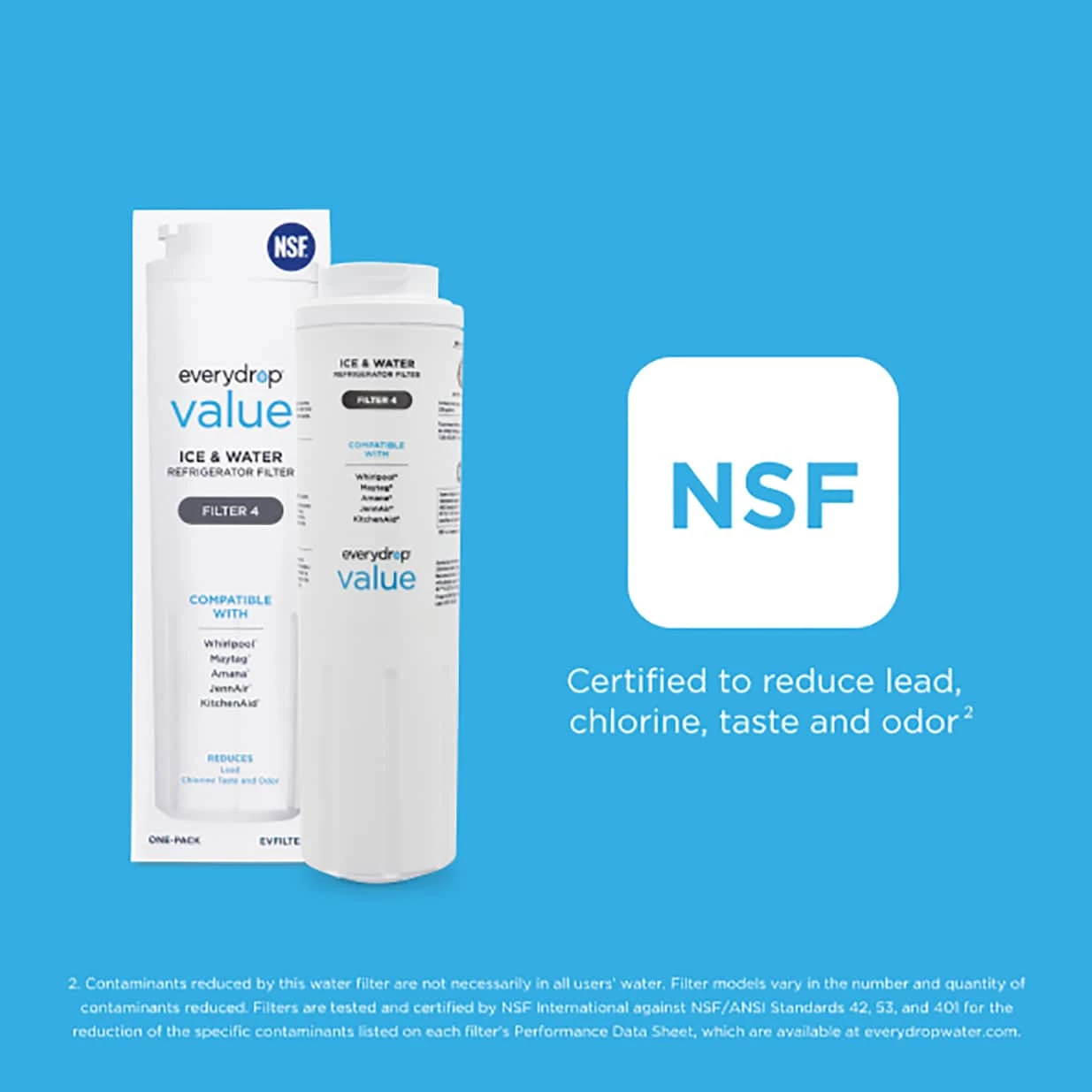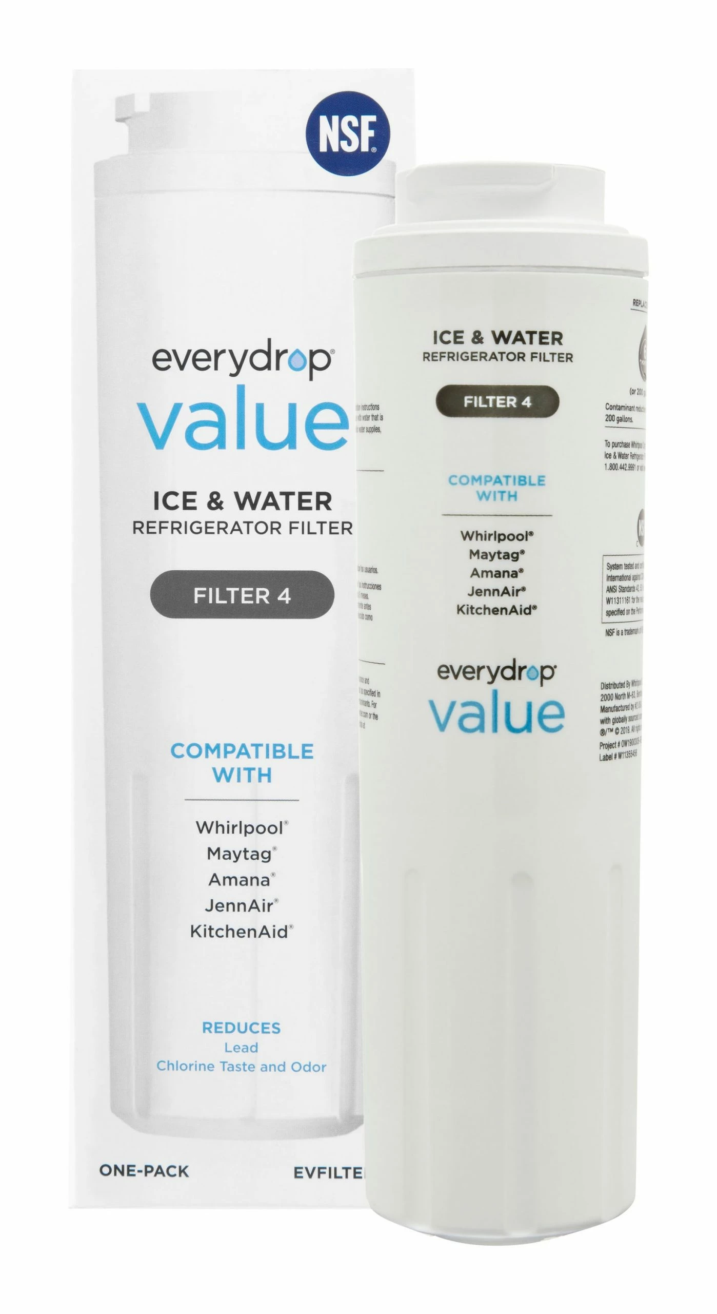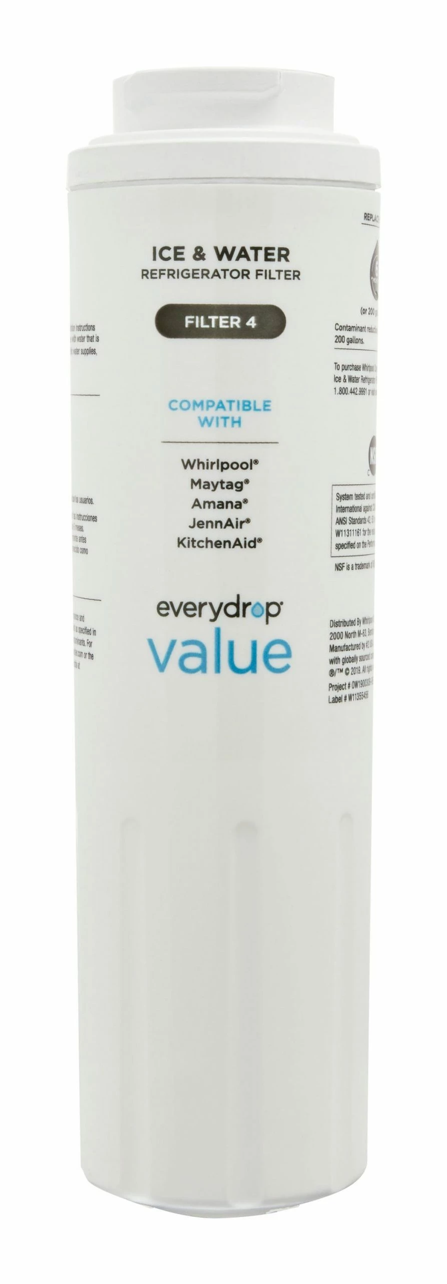 Certified to reduce lead, chlorine, taste, and odor, everydrop® value filters offer convenient, filtered water for you and your family. For the cleanest water, replace your everydrop® value filter every 6 months (or 200 gallons). everydrop® value Ice and Water Refrigerator Filter 4 replaces System Model W11311161.