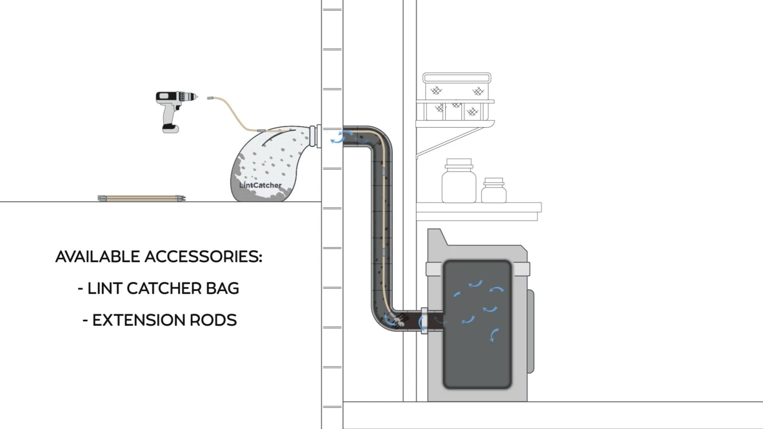 The most valuable tool you can own to ensure the safe operation of your clothes dryer is the LintEater. The LintEater, designed for homeowners by a leading manufacturer of professional duct cleaning equipment, makes the regular maintenance of your dryer vent system easy. It effectively removes dangerous lint buildup in almost every type of dryer vent, eliminating a leading cause of house fires. The auger brush and flexible extension rods screw together and spin when powered by your cordless drill (not included). The rotating action of the auger brush and flexible rods scours your entire vent wall surface while traversing the multiple turns that are common in most dryer vent systems. Completely remove all loosened lint from the vent while brushing with the included shop vacuum or blower adapter. Exceptional reach also makes it a snap to clean behind, underneath and all around your dryer, appliances, baseboard heating vents and other hard-to-reach areas. Reduce drying times and save money on utility bills while ensuring the safety of your home: it’s easy when cleaning with Gardus power!