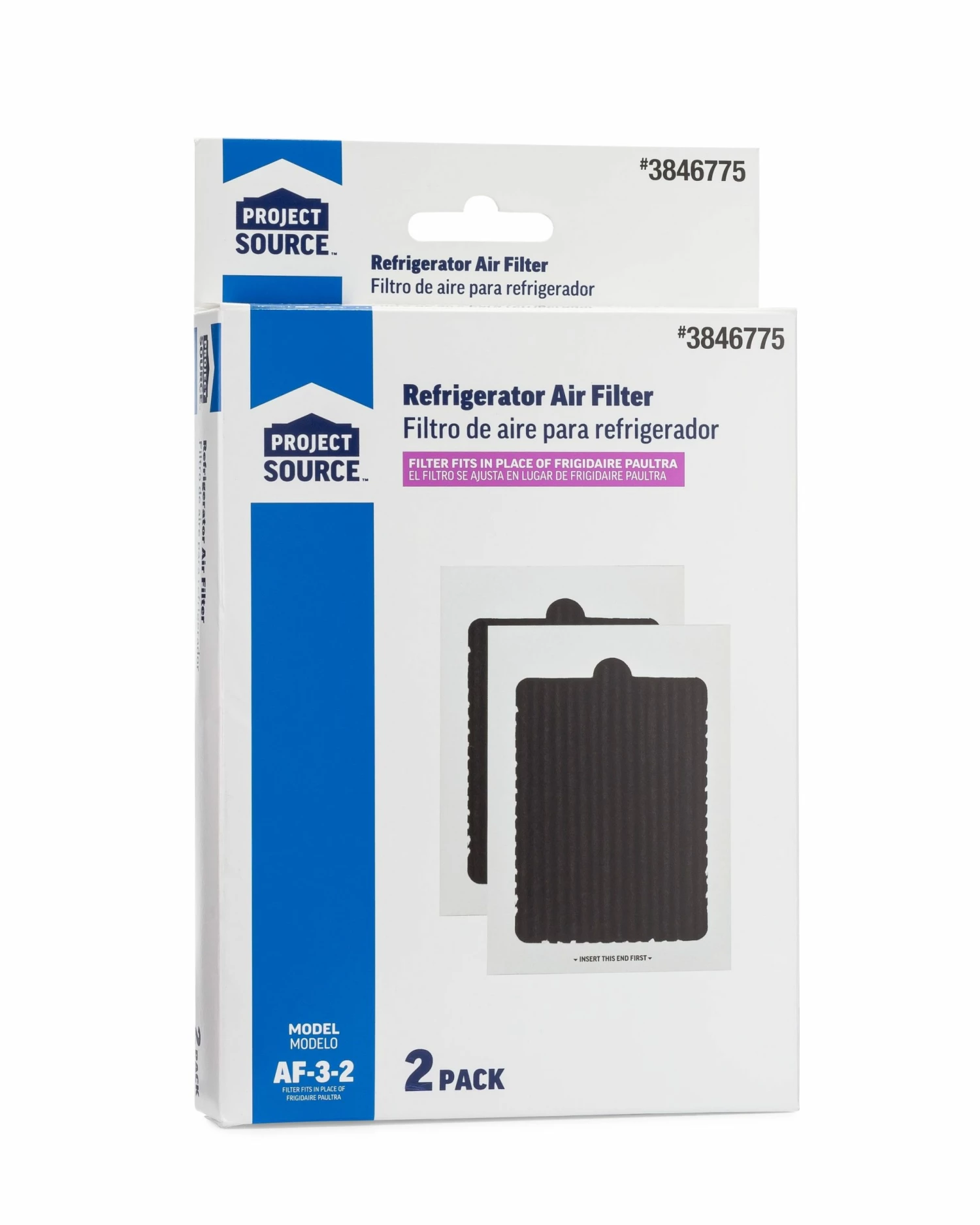 This Project Source AF-3-2 replacement refrigerator air filter helps keep your refrigerator’s air clean by absorbing impurities like a sponge using our high quality, activated carbon technology. This high quality economical alternative eliminates unpleasant odors in your refrigerator securing the freshness of your food. This value pack contains two filters, each filter maintaining your refrigerator air and food fresh for up to 6 months. Simple DIY installation, no tools required. Using 100% made in USA material, you can rest assure you are receiving the highest quality refrigerator air filter on the market. The AF-3-2 refrigerator air filter fits in place of Frigidaire filter model PAULTRA.