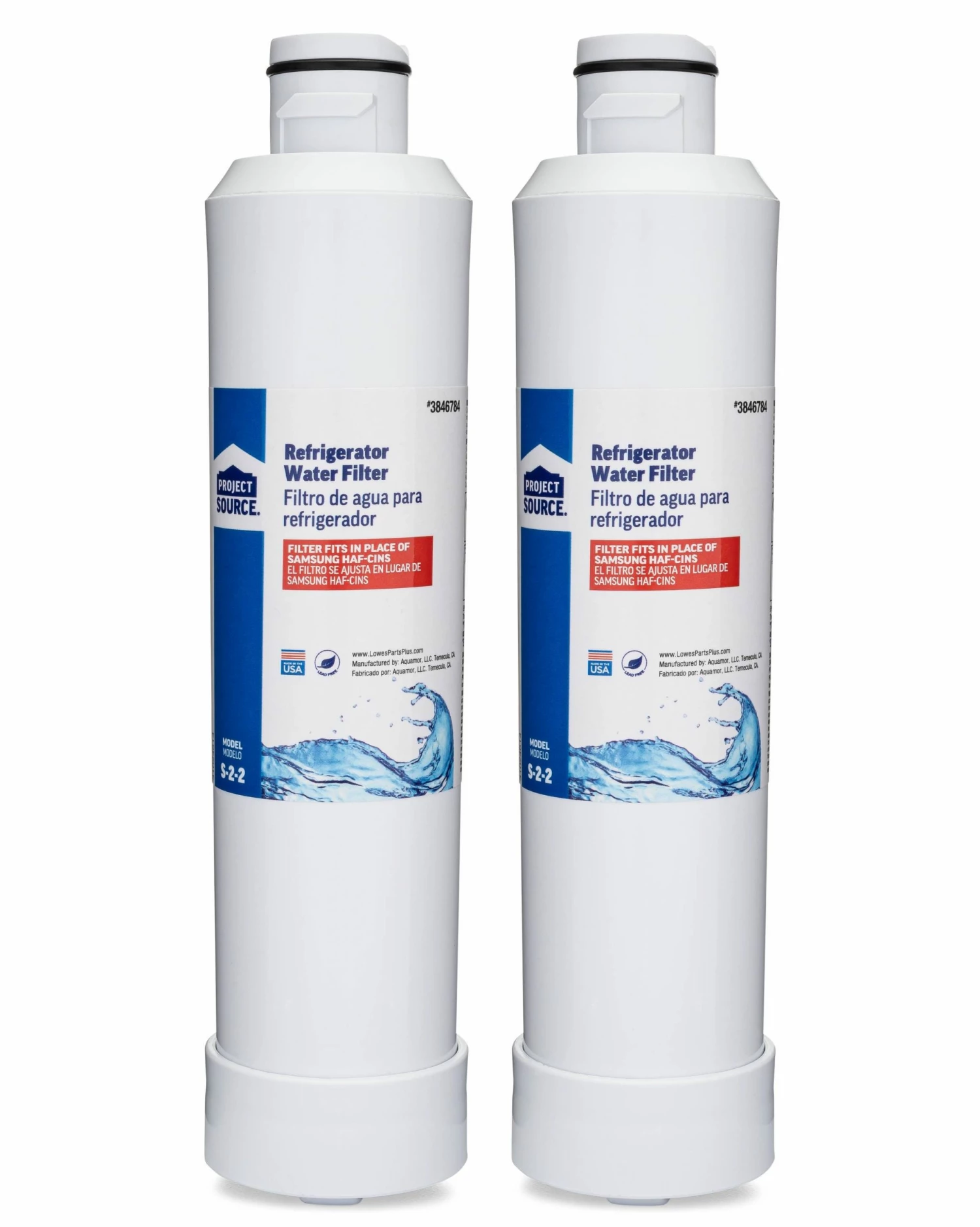 This Project Source S-2-2 replacement refrigerator water filter fits in place of Samsung filter model HAF-CINS. This certified, high quality, economical filter will deliver fresh, crisp, clean tasting water and ice cubes. Certified to NSF/ANSI standards 42, 53, 372, 401, P473 and CSA B483.1, this filter removes over 80 contaminants including Lead, Cyst, Mercury and Asbestos. Engineered with the power of 0.5 mic coconut shell carbon block, this filter provides tremendous capacity to reduce impurities, sediment and rust that may be present in your drinking water. The carbon block has millions of active sites on its surface and within the structure which can absorb impurities like a sponge and can breakdown and hold other types of impurities on its surface like a magnet. These processes ensure that you are receiving the cleanest and best tasting water possible for you and your family. Using this filter will replace 1500 water bottles reducing the amount of plastic waste in our landfills.