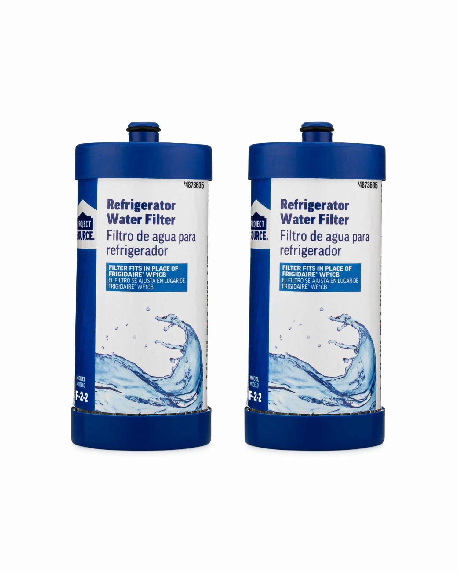 This Project Source F-2-2 replacement refrigerator water filter fits in place of Frigidaire filter model WF1CB. This certified, high quality, economical filter will deliver fresh, crisp, clean tasting water and ice cubes. Certified to NSF/ANSI standards 42, 53, 372, 401, P473 and CSA B483.1, this filter removes over 80 contaminants including Lead, Cyst, Mercury and Asbestos. Engineered with the power of 0.5 mic coconut shell carbon block, this filter provides tremendous capacity to reduce impurities, sediment and rust that may be present in your drinking water. The carbon block has millions of active sites on its surface and within the structure which can absorb impurities like a sponge and can break down and hold other types of impurities on its surface like a magnet. These processes ensure that you are receiving the cleanest and best tasting water possible for you and your family. Using this filter will replace 1500 water bottles reducing the amount of plastic waste in our landfills.