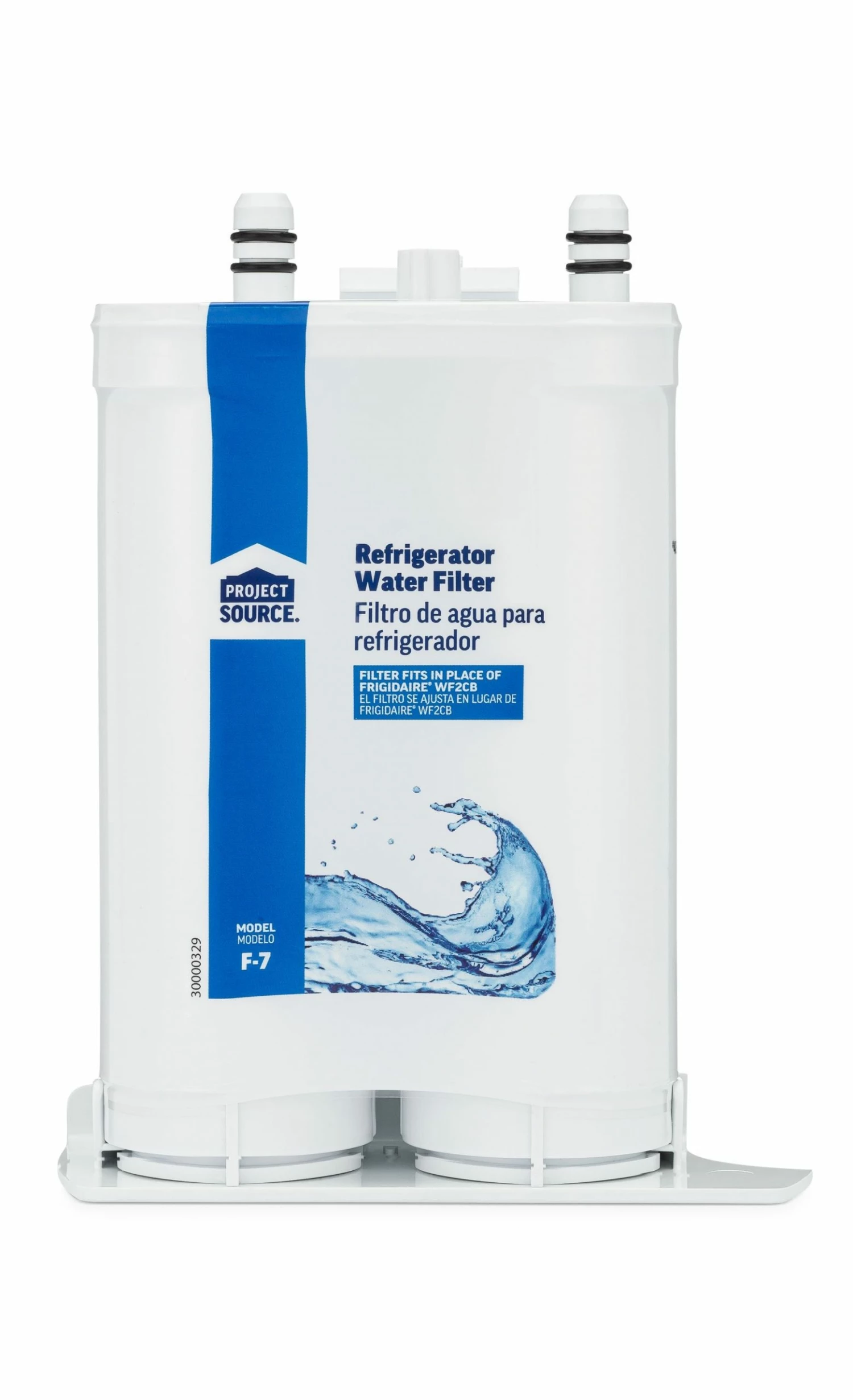 This Project Source F-7 replacement refrigerator water filter fits in place of Frigidaire filter model Pure Source 2. This certified, high quality, economical filter will deliver fresh, crisp, clean tasting water and ice cubes. Certified to NSF/ANSI standards 42, 53, 372, 401, P473 and CSA B483.1, this filter removes over 80 contaminants including Lead, Cyst, Mercury and Asbestos. Engineered with the power of 0.5 mic coconut shell carbon block, this filter provides tremendous capacity to reduce impurities, sediment and rust that may be present in your drinking water. The carbon block has millions of active sites on its surface and within the structure which can absorb impurities like a sponge and can break down and hold other types of impurities on its surface like a magnet. These processes ensure that you are receiving the cleanest and best tasting water possible for you and your family. Using this filter will replace 1500 water bottles reducing the amount of plastic waste in our landfills.