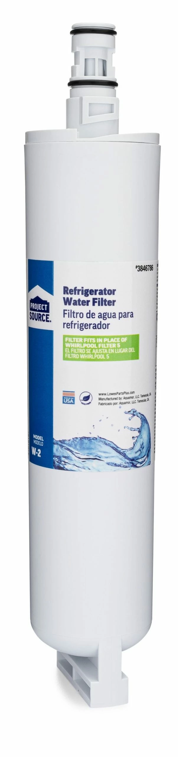 This Project Source W-2 replacement refrigerator water filter fits in place of Whirlpool filter model Filter 5. This certified, high quality, economical filter will deliver fresh, crisp, clean tasting water and ice cubes. Certified to NSF/ANSI standards 42, 53, 372, 401, P473 and CSA B483.1, this filter removes over 80 contaminants including Lead, Cyst, Mercury and Asbestos. Engineered with the power of 0.5 mic coconut shell carbon block, this filter provides tremendous capacity to reduce impurities, sediment and rust that may be present in your drinking water. The carbon block has millions of active sites on its surface and within the structure which can absorb impurities like a sponge and can break down and hold other types of impurities on its surface like a magnet. These processes ensure that you are receiving the cleanest and best tasting water possible for you and your family. Using this filter will replace 1500 water bottles reducing the amount of plastic waste in our landfills.