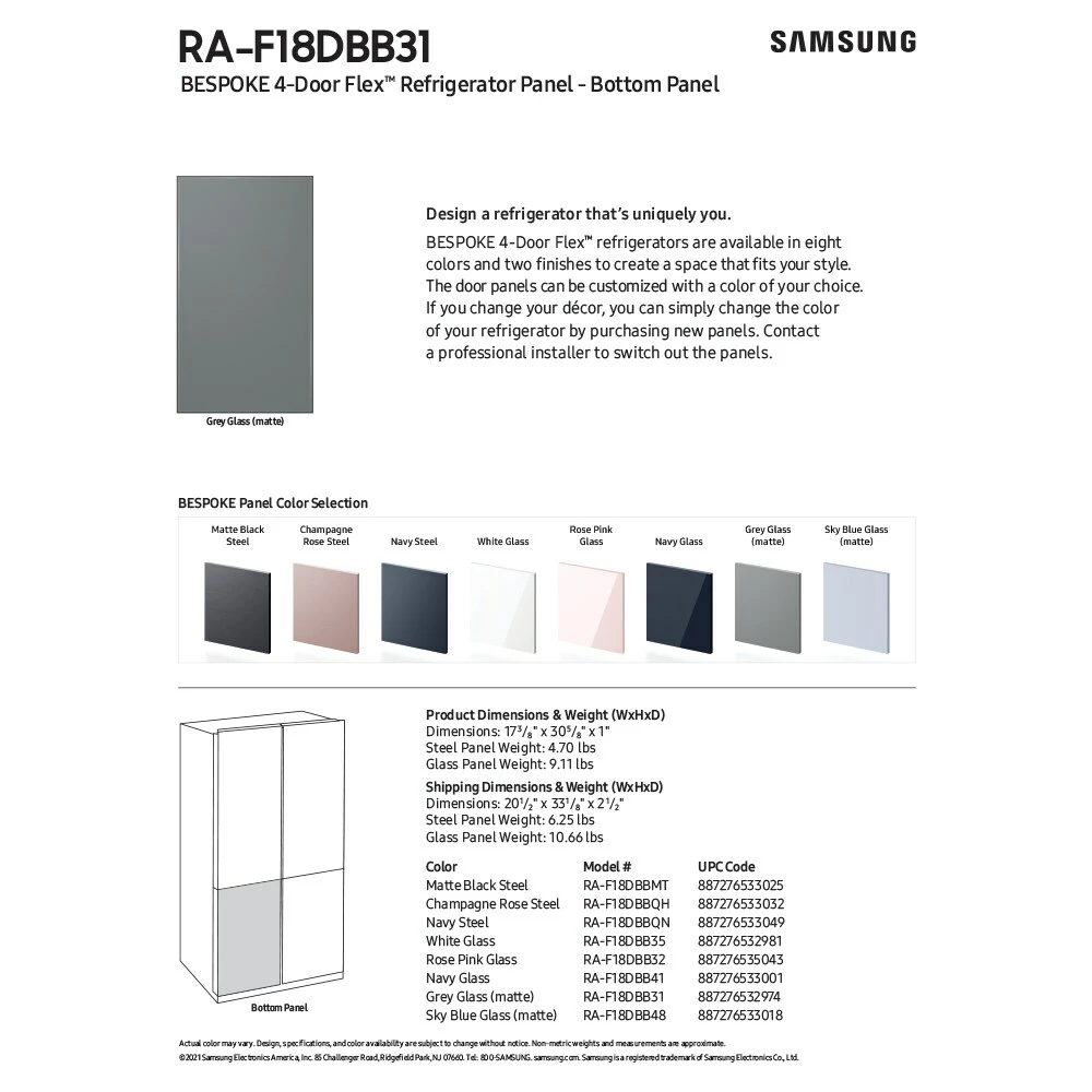 Design a refrigerator that’s uniquely you with the BESPOKE 4-Door Flex Refrigerator, with customizable door panels. Choose from eight door panel colors and two finishes, steel or glass, to create a refrigerator that fits your space and style. f you change your d飯r, you can simply change the color of your refrigerator by purchasing new panels. Contact a professional installer to switch out the panels