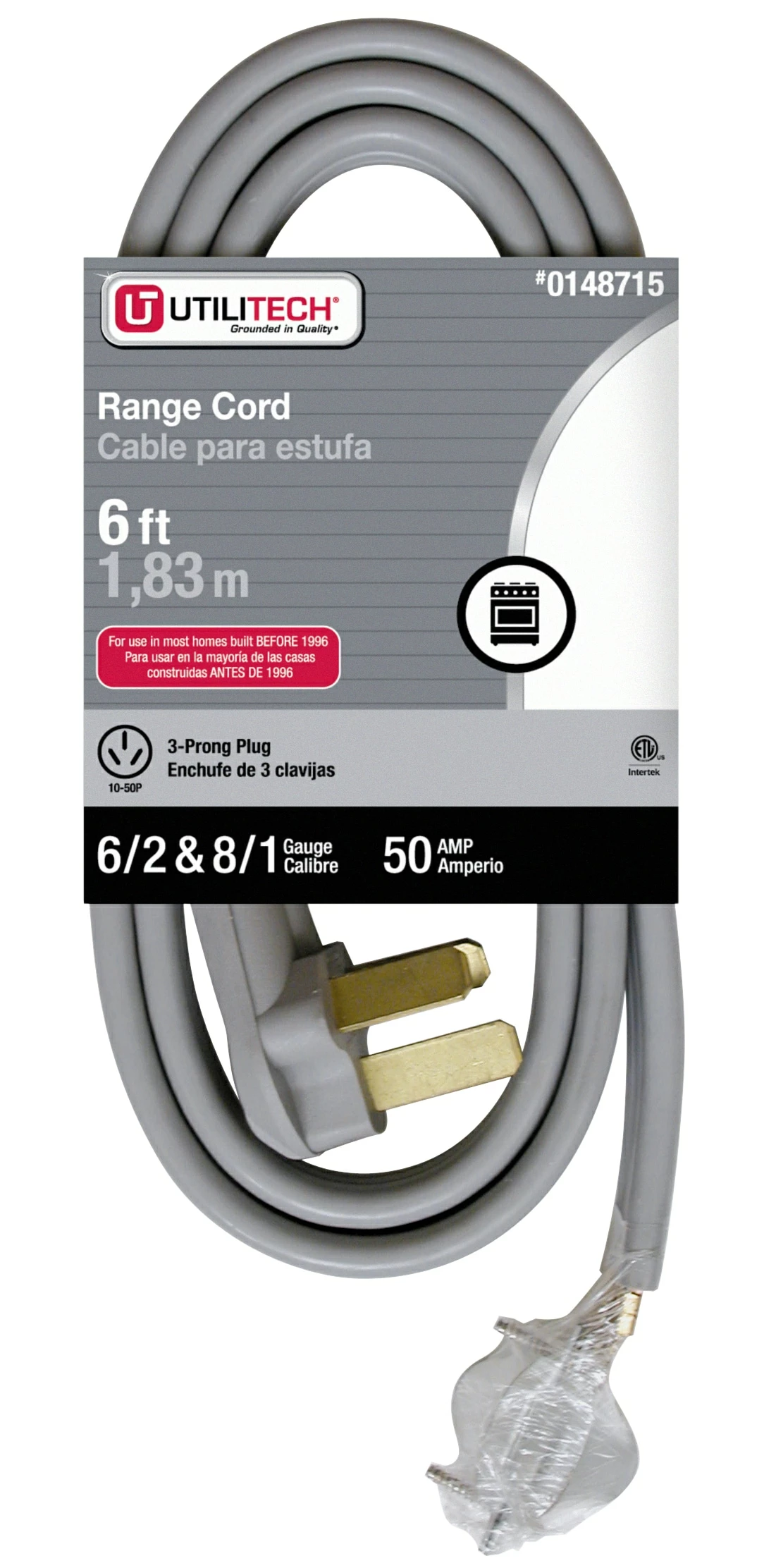 - 6/2 And 8/1 SRDT 50 Amp 3-pole 3-wire range cord for most homes built prior to 1996